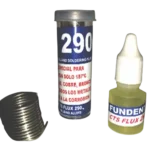 Deposite dos o tres gotas de CTS FLUX 290, luego caliéntelo con llama indirecta. El fundente se tornará de un color ámbar (cuide de no quemar el fundente, de ser así límpie y aplique nuevamente). Allí aplique CTS 290 como “pintando” (ésta correrá automáticamente). En el caso de que se formen pelotitas dar mayor temperatura. Una vez acabado el operativo dejar enfriar la unión de CTS 290, y rápidamente se solidificará, brindando todas las características antes detalladas.
